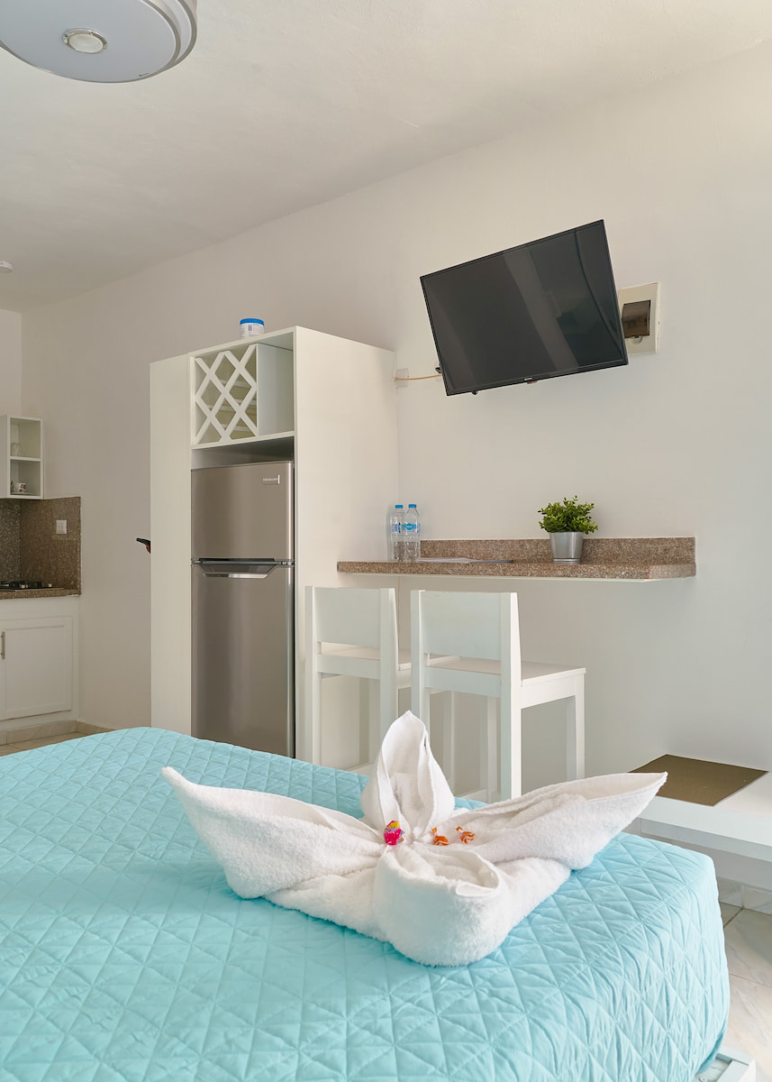 Aparta Florencia Punta Cana ofrece apartamentos amplios y bien equipados en la zona de Bávaro de Punta Cana. Esta propiedad es ideal para familias o grupos que buscan una experiencia como en casa durante sus vacaciones en Punta Cana. Cada apartamento cuenta con una cocina totalmente equipada, sala de estar y balcón privado, proporcionando un amplio espacio y comodidad para los huéspedes. El complejo cuenta con una bonita piscina exterior y una zona ajardinada, perfectas para relajarse tras un día explorando las playas o los lugares de interés cercanos. Situado a un corto trayecto en coche de populares complejos turísticos como Secrets Cap Cana y Breathless Punta Cana, Aparta Florencia ofrece una alternativa más independiente y rentable a las estancias con todo incluido. Los huéspedes pueden acceder fácilmente a los supermercados cercanos para abastecerse, lo que permite unas vacaciones más flexibles y económicas. La ubicación del establecimiento también facilita el acceso a los restaurantes, tiendas y opciones de ocio locales, dando a los visitantes la oportunidad de conocer el lado auténtico de Punta Cana más allá de las zonas turísticas.